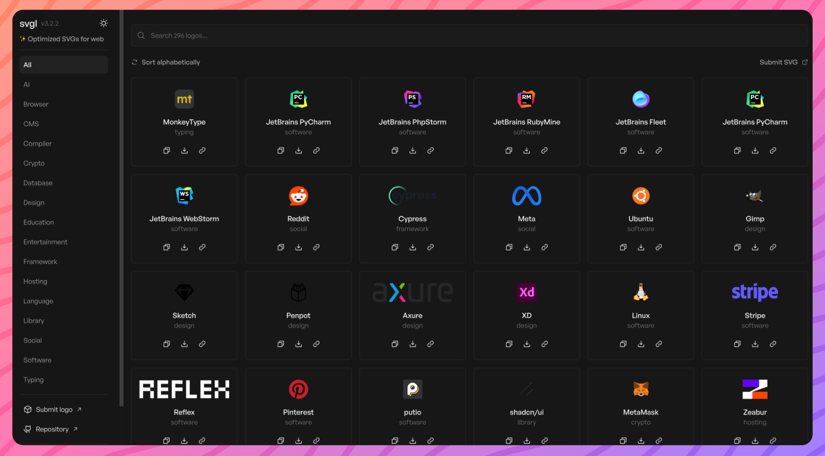 针对 Web 优化的 SVG,各种品牌和工具的 SVG 格式 LOGO,支持复制和下载使用。
