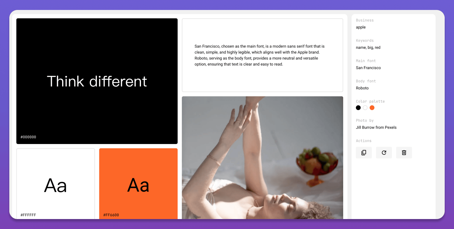 这个工具可以通过提示词来生成情绪版,虽然可用性还是一般,不过也算是 AI 对设计灵感辅助的一个有趣尝试。