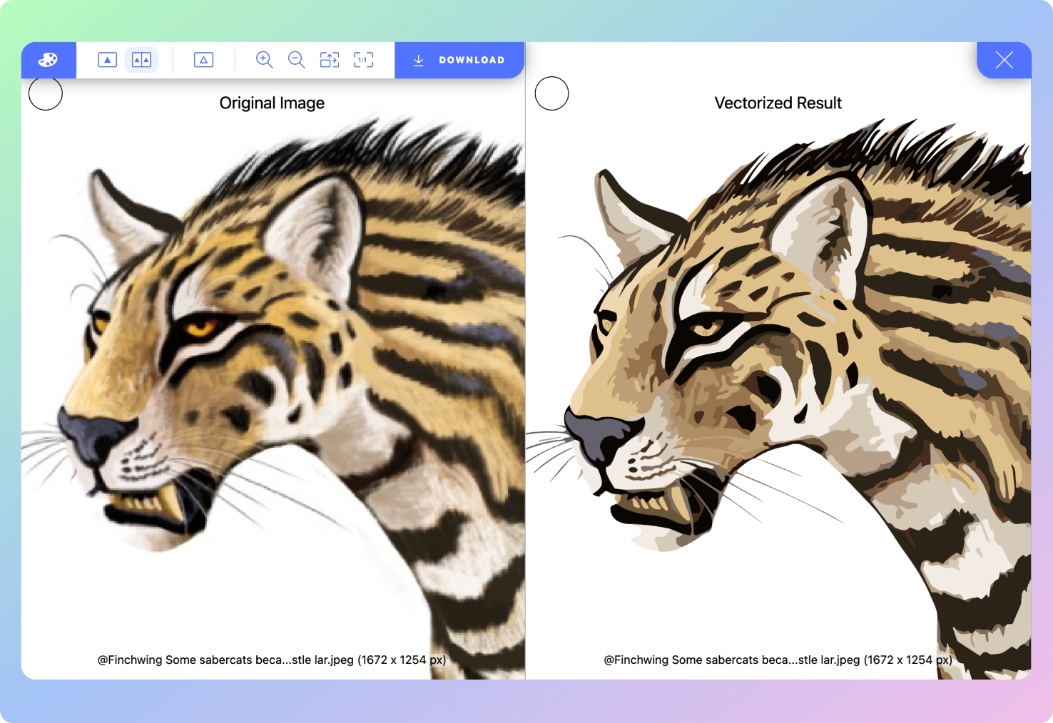 这是一款在线工具,上传图片将图片转换成矢量内容,支持导出为 SVG、EPS、PDF等格式。测试下来效果都很不错,该工具目前属于内测阶段全部免费,网站声称会在今年9月中旬开始向 API 客户收费。