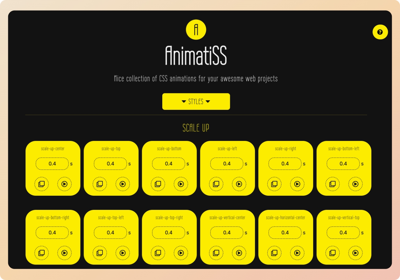 网站提供了放大、缩小、旋转、缩放、滑动、跟踪、阴影、模糊等一整套 CSS 动画代码,支持在线预览效果,并且可以自定义参数非常直观。